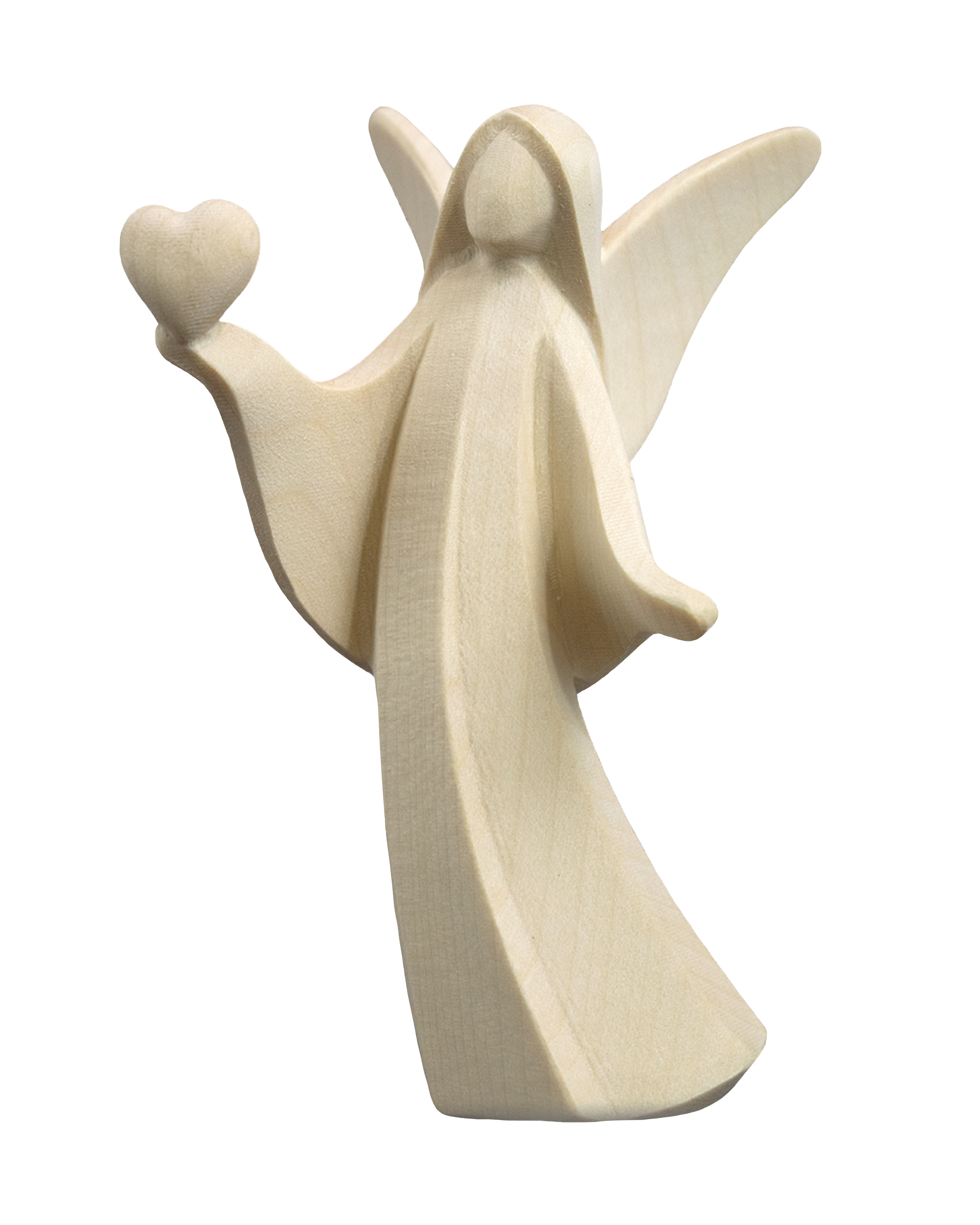 Die Figuren werden fein geschliffen und unbehandelt oder mit einem transparenten Schutzöl versehen. Die natürliche Holzmaserung bleibt vollständig sichtbar – jede Figur ist ein Unikat.