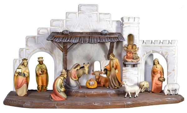 Stall m. braun_weiß + Rudolf 13Tlg. - 4 Set Krippenfiguren Rudolf