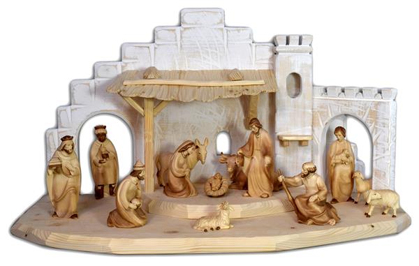Stall m.nat_weiß + Rudolf 13Tlg. - 4 Set Krippenfiguren Rudolf