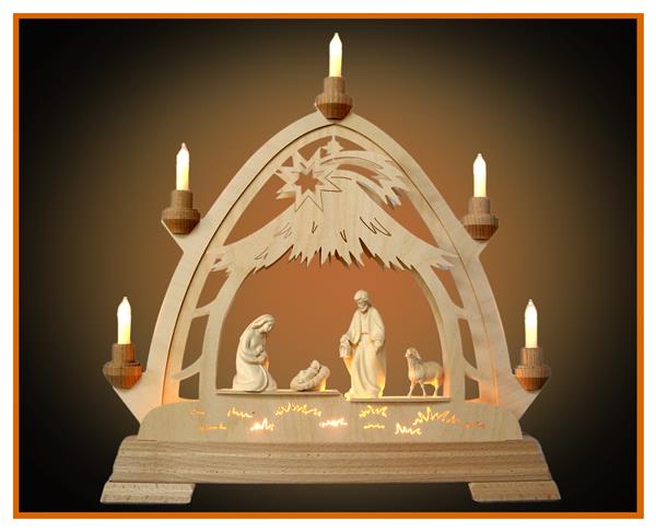 Gotischer Bogen 42,5x40x7cm +Hl. Fam.9cm+Schaf - 4 Lichterbogen