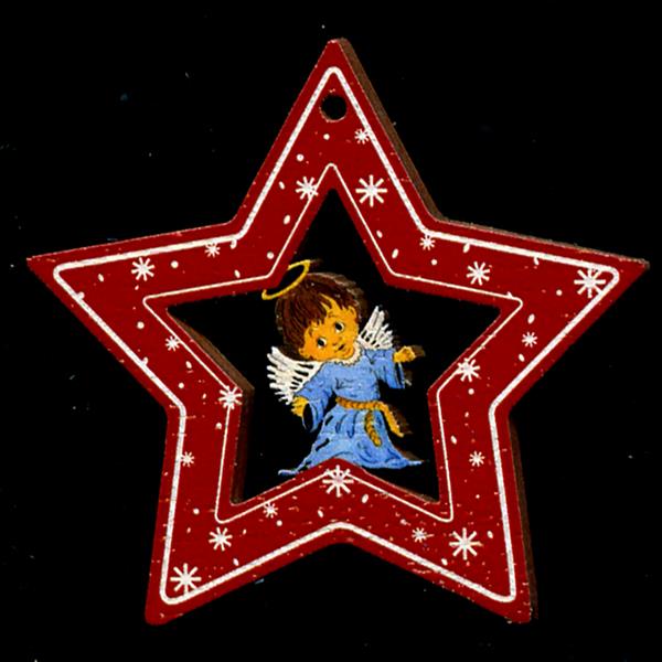 Stern Rot mit Engel - 6 Deko Rot