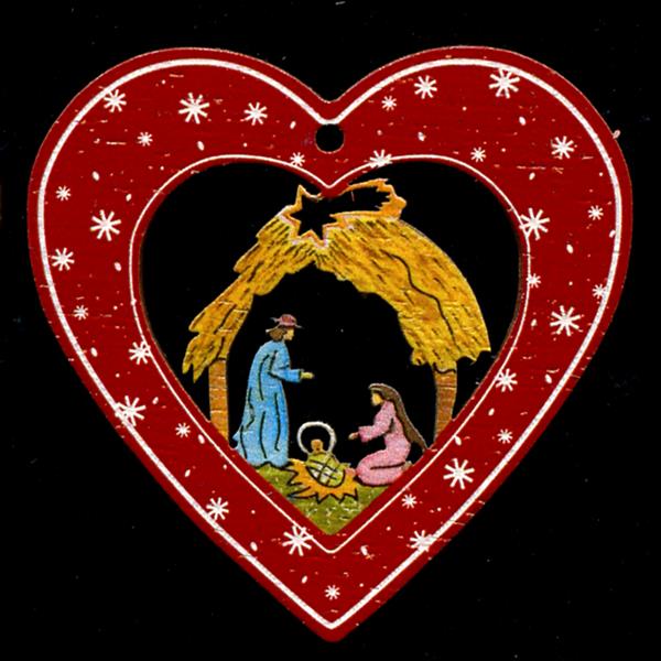Herz Rot mit Hl.Familie - 6 Deko Rot