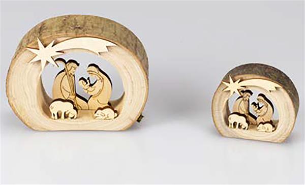 woodcarvings L0101 Holzstamm + Hl.Familie + Kometstern